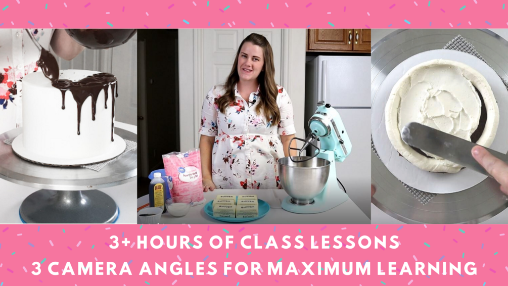 *Cake batter, buttercream, and chocolate ganache ingredient lists are provided once class is purchased. This class uses my best chocolate doctored cake mix recipe and American Buttercream.